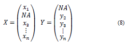This principle refers to some operations between vectors, omitting the missing data and working with the available matched points; that is, if there are two vectors with NA, {x,y} can be found using the available data principle [15].