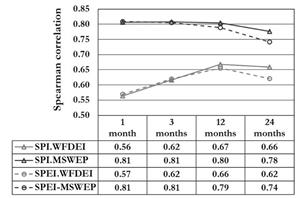 Figure 9: Mean values of the Spearman correlation for the SPI and SPEI