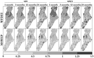 Finally, we used the Bootstrap method to evaluate the impact of sampling uncertainty on the estimation of drought indicators. The results show that although the MSWEP and the WFDEI are different products, they follow the same trends for the uncertainty associated with the SPI and the SPEI estimation, which once again indicates the consistency of the results derived from reanalysis data.