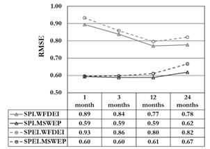 Figure 11: Mean values of the RMSE for the SPI and SPEI indices