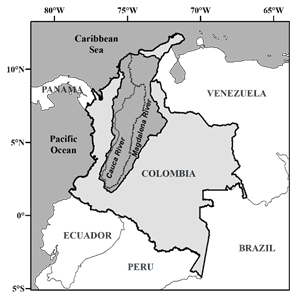 Figure 1: Location of the Magdalena-Cauca river basin in Colombia