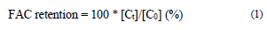k: rate constant; -(-) the minus sign indicates FAC degradation; Co: Initial concentration; R2: determination coefficient. Source: The Authors.