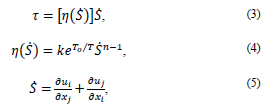 The fluid model is assumed as homogeneous and incompressible and it was based on the power law considering blood as non-Newtonian [21]. In this model, the shear stress 𝜏(𝑁/𝑚2) is calculated as: