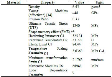 Table 1: Mechanical properties of NiTi (nitinol).