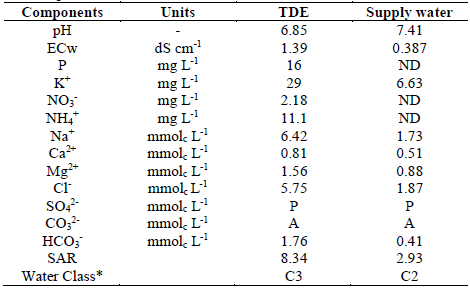 Table 1: Characteristics of the treated domestic effluent (TDE) and supply water used in the experiment.