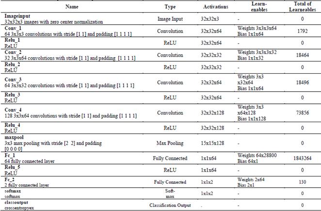This layer is set to a 15x15 pixels grid covering the smallest detected object. It is the only max-pooling layer in the model since prematurely down-sampling data can lead to loss of important information necessary for learning [51]. After the first fully connected (FC) layer (64 neurons) combines all features extracted in the previous layers, which is corrected next by a ReLU layer, finally combined in the second fully connected layer. The last layer of the model is a softmax layer, which normalises the output of the previous FC layer, providing a confidence measure and computing the loss of the model. Fig. 2 shows the schematic model of EspiNet V2 network.