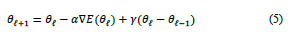 is the iteration number, the learning rate is defined as α > 0, weights and biases define the parameter vector θ and E(θ) is the loss function. The algorithm is stochastic since it uses a subset of the training set (minibatch) to evaluate and update the parameter vector. One iteration corresponds to each evaluation of the gradient using the mini-batch. At each iteration, the algorithm takes one step towards minimising the loss function. One epoch encompasses the full pass of the training algorithm over the entire training set using mini-batches. For EspiNet v2, the number of epochs is defined after training analysis [48]. The momentum term γ regulates the contribution of the previous gradient step to the current iteration and is used to avoid oscillation along steepest descent to the optimum.