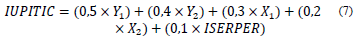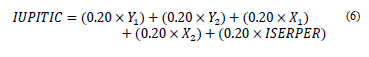 For each of the 1,678 companies, the sub-index values were calculated and with uniform weightings for each sub-index, the IUPITIC composite index was obtained, which yielded the following value -1.5x10-5 determined with eq. (6):