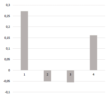 This delivered an IUPITIC Composite Index of de -6,412x10-6, slightly smaller than the previous one. The Analysis of Variance of a single Factor - ANOVA (Table 3), continues contrasting to a confidence level of 95% that the means by (according to) company size are different. Which is evidence of the good robustness of the general index, which maintain the same descriptive suspicions that were mentioned (Fig. 2).