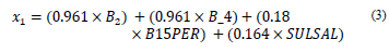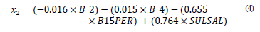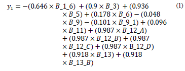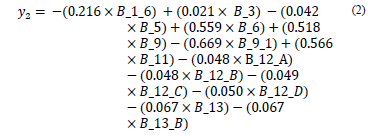 The coefficients that appear in the following equalities (eq. 1-2) were obtained from the Analysis of Main Categorical Component (CATPCA) technique.