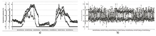 Monitoring of data between the sensors and device, and between device and ARTIMO server was performed starting with the installation [10]. The transmission of the data fell between 1 and 3 hours approximately from the time it sarted (similar to a problem of intermittence that came up during the trial of the electrogene group), which meant less than 20% of day availability. as well as a variable unexpected sampling rate in the platform. Likewise, a problem of unpredictable variation was identified. Finally, the firmware was modified in order to not store the data queue with each frame sent to the mobile network, solving the transmission fall situation.