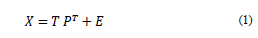 where X is the PCA model, T is the scores matrix, PT is the transposed loadings matrix and E corresponds to the model error.