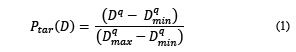 where d i . is a desirability of each response, r i is the weight or importance of each response, and n is the number of responses included in the optimization. Weight (r i ) varies from 1 (least important) to 5 (most important). d i is the individual desirability function of a response, which ranges from 0 (undesired response) to 1 (fully desired response). Thus, the individual desirability function can convert the value of a response into a value between 0 and 1. The final value of D is a value between 0 and 1. For perfect accomplishment of the target values, the value of D is unity