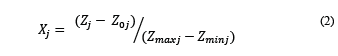 where X j is the coded value of factor j, Z j is the real value of factor j, Z 0j is the real value of factor j at the center point and Z maxj and Z minj are the maximum and minimum values of the factor j in the domain space respectively.