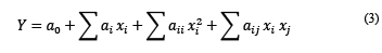 To estimate each response a second-order polynomial equation calculated according to eq. (3) was used.
