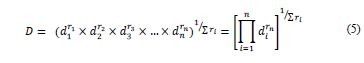 The geometric mean of individual desirability is shown in eq. (5) [35].