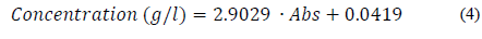 Here, "Concentration (g/l)" is the maltose concentration in the calibration curve and Abs is the absorbance of the determined maltose concentration.