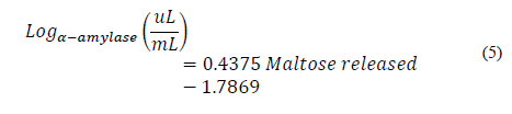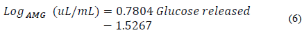 Here, Log AMG (uL/mL) is the logarithm of the concentration of the enzyme α-amylase.