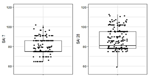 Figure 7: SAI values for calcined clays with high silicon oxide content at 7 and 28 days.