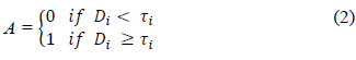 As stated in the construction assumptions, behaviour is binary. A person acts when their individual disposition (D i ) to act surpasses their individual action threshold (τ i ). Eq. (2) shows the decision rule for acting [22]: