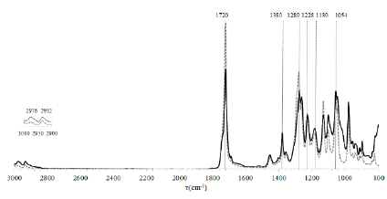 Figure S4: FTIR spectra for PHB commercial () and PHB produced by B. megaterium LVN01 from waste glycerol ().