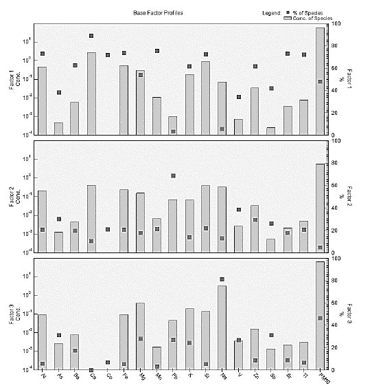 Xij is the concentration of the j th chemical species measured in sample I; f kj s the concentration of the j th chemical species from source factor k; g ik is the relative contribution of the k th source factor in sample I; and e ij is the PMF receptor model error for the j th chemical species measured in sample i.