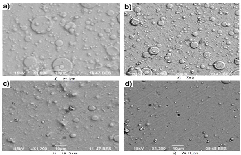 The placement of the substrates was farther from the cathode surface and the MP size and number diminished, thus decreasing the surface roughness, Fig. 15 illustrates the images.