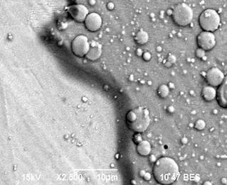 Fig. 4 shows a typical image of a titanium coating obtained by SEM. On the left appears the stainless steel substrate, while on the right, the titanium coating with the presence of macroparticles is observed. Fig. 5 displays a spectrum of the titanium film obtained by EDS, taken in the center of the sample. The presence of titanium and, to a lesser extent, the elements making up the substrate can be seen.