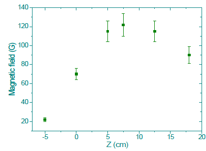 The characterization of the magnetic field, in the interior and along the filter, gives a profile with the maximum value in the center of the filter, 120G, which decreases towards the ends up to 60G. The outcome appears in Fig. 6.