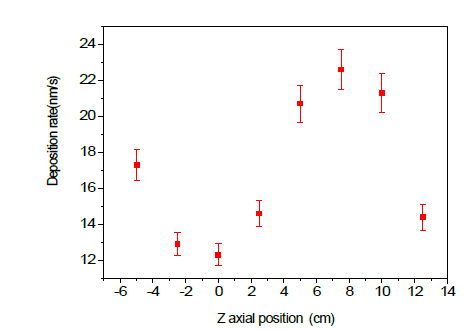 Figure 7: Deposition rate as function of the axial position inside the magnetic concentrator.