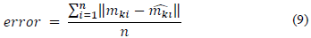 are the coordinates estimated with the matrix, and mki are the coordinates given by the tracker.