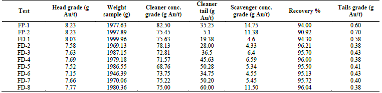 Table 3: Metallurgical results for the flotation tests.