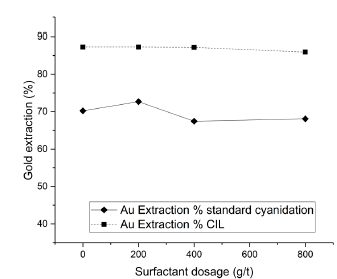 3.2. Effect of surfactant in standard cyanidation and CIL process tests.