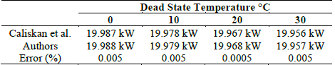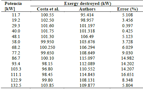 Moreover, they calculated the exergy destroyed for different powers. This resulted in Fig. 6, where it is observed that the exergy is approximately constant, i.e., the exergy shows few variations when altering power-which is congruent with the results in this article-and reveals a maximum power error of 31.217%, as shown in Table 6.