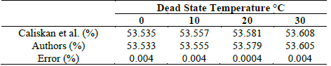 Table 8: Comparison of values obtained for the exergy efficiency.