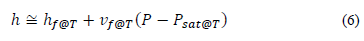 For a compressed liquid, assuming the enthalpy h is given for low and moderate pressures and temperatures, it is possible to considerably reduce the error when evaluating ℎ by: