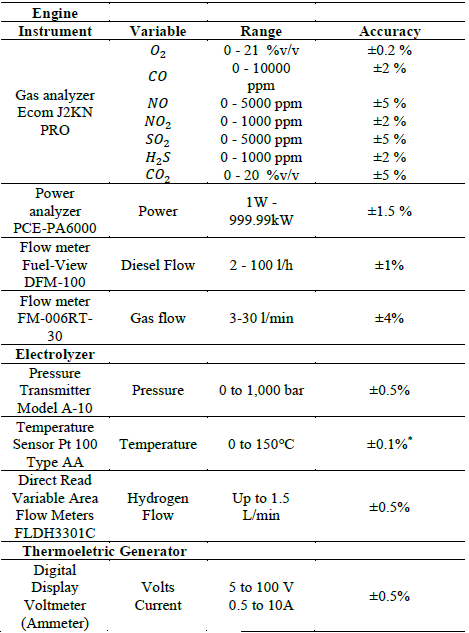 Table 1 shows the measuring instruments used for each subsystem in order to know the variables involved.