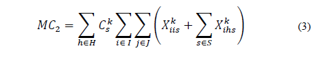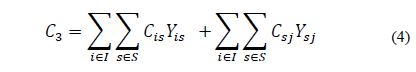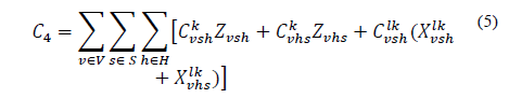 C4 es el costo de movimiento de los centros satélite a los centros logísticos principales, se considera el costo de sobrecarga asociado únicamente entre los centros satélite y los centros logísticos principales.