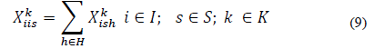 X k ish = Cantidad de flujo que se originó en el cliente i que va de s a h