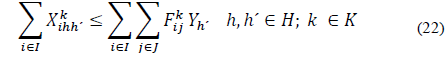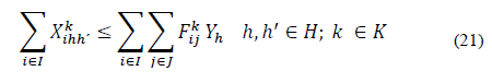 Las restricciones (7) a (11) corresponden a la conservación de flujo entre nodos y garantizan que la cantidad de paquetes enviados desde el cliente inicial hasta el cliente final, transiten a través de cada uno de los nodos. Las restricciones (12) a (14) aseguran que los centros logísticos principales y los satélites estén funcionando y se relacionen respectivamente entre ellos (Cada centro satélite está conectado a un centro logístico principal). Estas relaciones están dadas en función de las ecuaciones (15) y (16) que garantizan la conexión entre los clientes, satélites y centros logísticos principales.