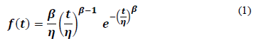 Due to its flexibility to model the design, production, and wear out or aging phases of a product, the Weibull distribution is widely used in reliability and lifetime analysis [2]. And since all products are subjected to a random (variant) environmental stress, and they have a strength to withstand the applied stress, which means that both the stress and the strength are modeling by a probability density function, then their reliability analysis is performed by using the stress-strength analysis given in the next section [13]. The compound Reliability Weibull/Weibull stress/strength probability density function is based on the Weibull distribution [14] given by: