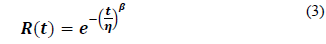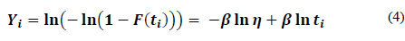 where the estimation of the β and η parameters is performed by using the linear form of eq. (2) as