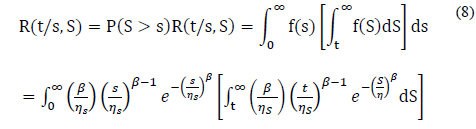 Thus, based on the Weibull distribution defined in Eq. (1), the Weibull/Weibull stress/strength formulation for β s =β S is as follows.