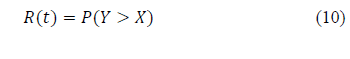 The stress/strength function is the one we must use to determine the reliability of a product which is subjected to variant stress [8]. And since the Weibull/Weibull stress-strength function does not have the closure property [16,17], implying that it has not a close solution for β s ≠β S , then the purpose of this section is to present the formulation of the stress-strength Weibull/Weibull reliability function when (β s =β S ), as well as when (β s ≠β S ). In general, the stress/strength reliability function, as shown in Fig. 1, is given by the probability that the strength (S=Y) will be higher than the applied stress (s=X) R(t)=(P(Y>X)) [13]. Therefore, the inference region represents the corresponding cumulative failure function [18].