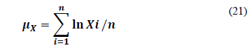 Step 6. Since the average of the log stress data is μ Xs = 15.75, and the average of the log strength data is μ Xs =17.3, then from eq.(22) μ ys =6989990.705 and μyS=32633020,09.