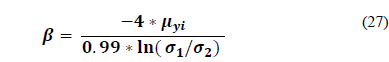 Step 10. Using the maximum and minimum stress σ 1 , σ 2 and μ y values [13], determine the corresponding Weibull shape β value as