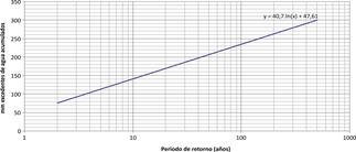 Si se utiliza el valor de 70 mm, considerado como umbral para alcanzar una inundación extensa, el tiempo de recurrencia estadístico para que ocurra dicho evento es de 1,73 años.