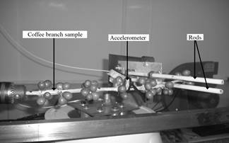 The coffee samples, consisting of unripe and ripe fruit branches, were submitted to different frequency levels. For this purpose, a vibration system manufacturer by Ling Dynamic Systems (LDS) was used, powered by a PA 1000 L amplifier, a field power supply FPS 10L, a V 555M6-CE electromagnetic shaker and a Comet USB Dactron controller.