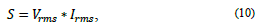 The apparent power per phase is determined using eq. (10), where the RMS values of the voltage and current signals can be calculated using eqs. (11) and (12), respectively.