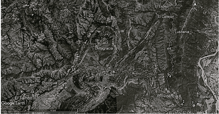 Tabla 1: Lista de sitios de interés visitados con las respectivas coordenadas en sistema de georreferenciación MAGNA SIRGAS-Bogotá.